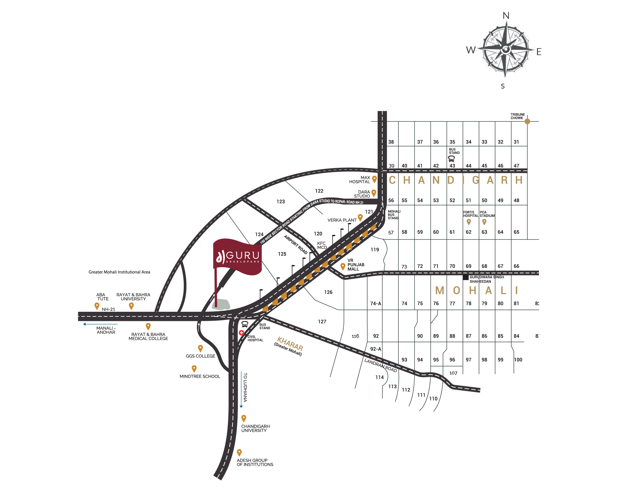 A LOCATION That Exceeds Your Expectations! Guru Homez is built in Kharar's most desirable spot, taking into account the area's future growth potential.The neighbourhood is surrounded by all facilities, making it a one-stop destination for residents.